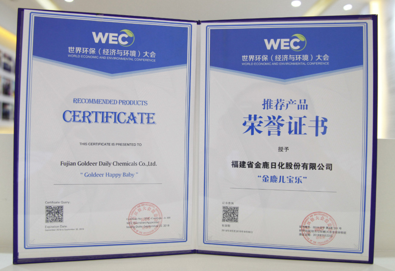 金鹿日化榮獲世界環保(經濟與環境)大會國際大獎