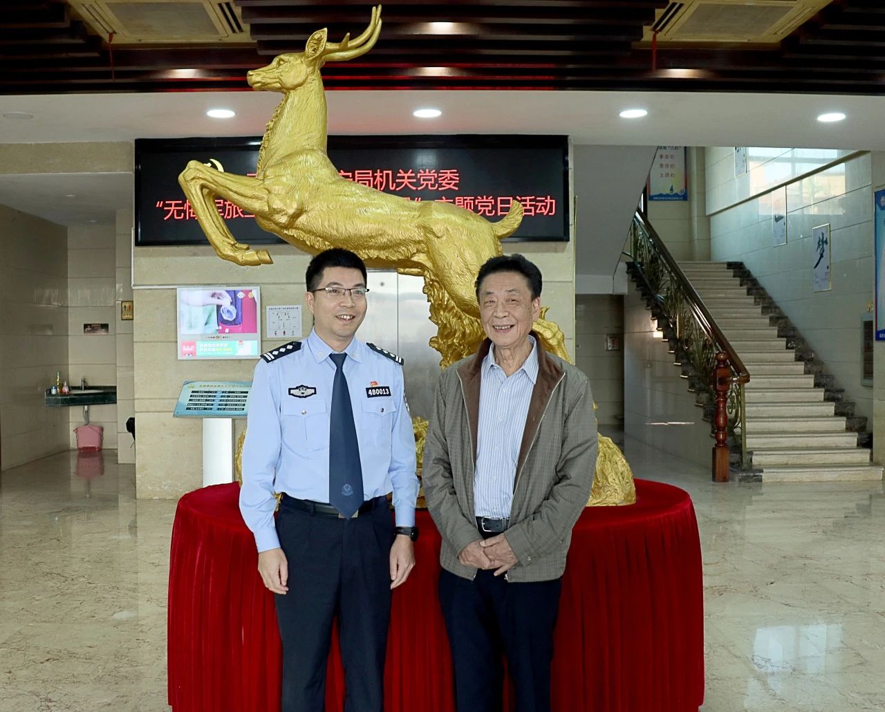 2023年11月17日下午,南安市公安局黨委委員、政工室主任吳錦良,南安市公安局機(jī)關(guān)黨委專(zhuān)職副書(shū)記張金松帶領(lǐng)軍旅民警來(lái)到了金鹿集團(tuán),開(kāi)展“角色轉(zhuǎn)變 初心不變”“循足跡、悟思想、鑄忠魂、擔(dān)使命”主題黨日暨主題教育調(diào)研活動(dòng)。金鹿集團(tuán)董事長(zhǎng)張華安、常務(wù)副總經(jīng)理張瑜、黨支部書(shū)記兼工會(huì)主席柯美輝予以熱烈歡迎。