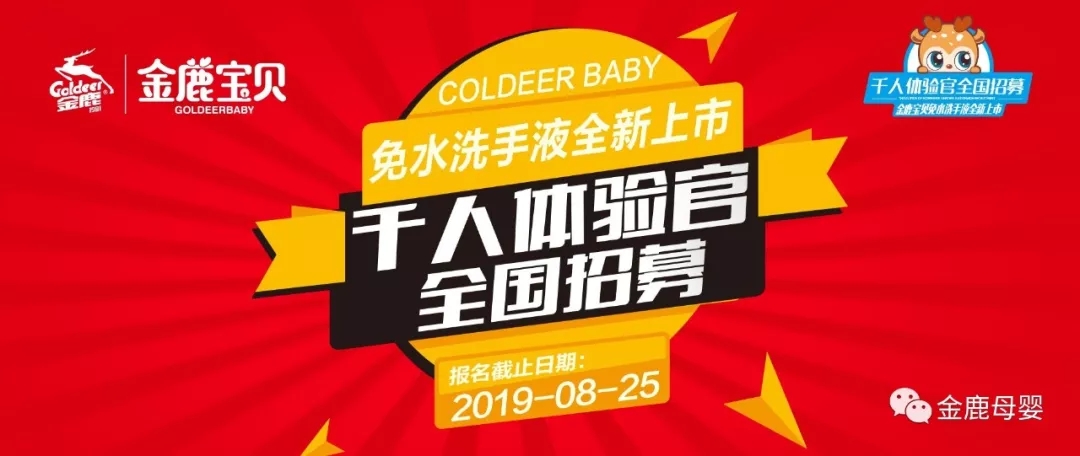 金鹿寶貝新品季 | 千人體驗(yàn)官全國(guó)招募,點(diǎn)贊贏華為P30pro! 雙手是人體最活躍的部分 它們每時(shí)每刻都要接觸各種各樣的東西 沾滿了各種污物、細(xì)菌 若不及時(shí)將這些污物細(xì)菌清除干凈 就會(huì)為健康埋下隱患 金鹿寶貝領(lǐng)銜新品 掀起健康手護(hù)新革命 這是一場(chǎng),關(guān)于健康的升級(jí) 這是一道,關(guān)于護(hù)膚的工序 這是一款,關(guān)于殺菌的手護(hù) 由你,來揭開我的神秘面紗... 2019-08-21 |